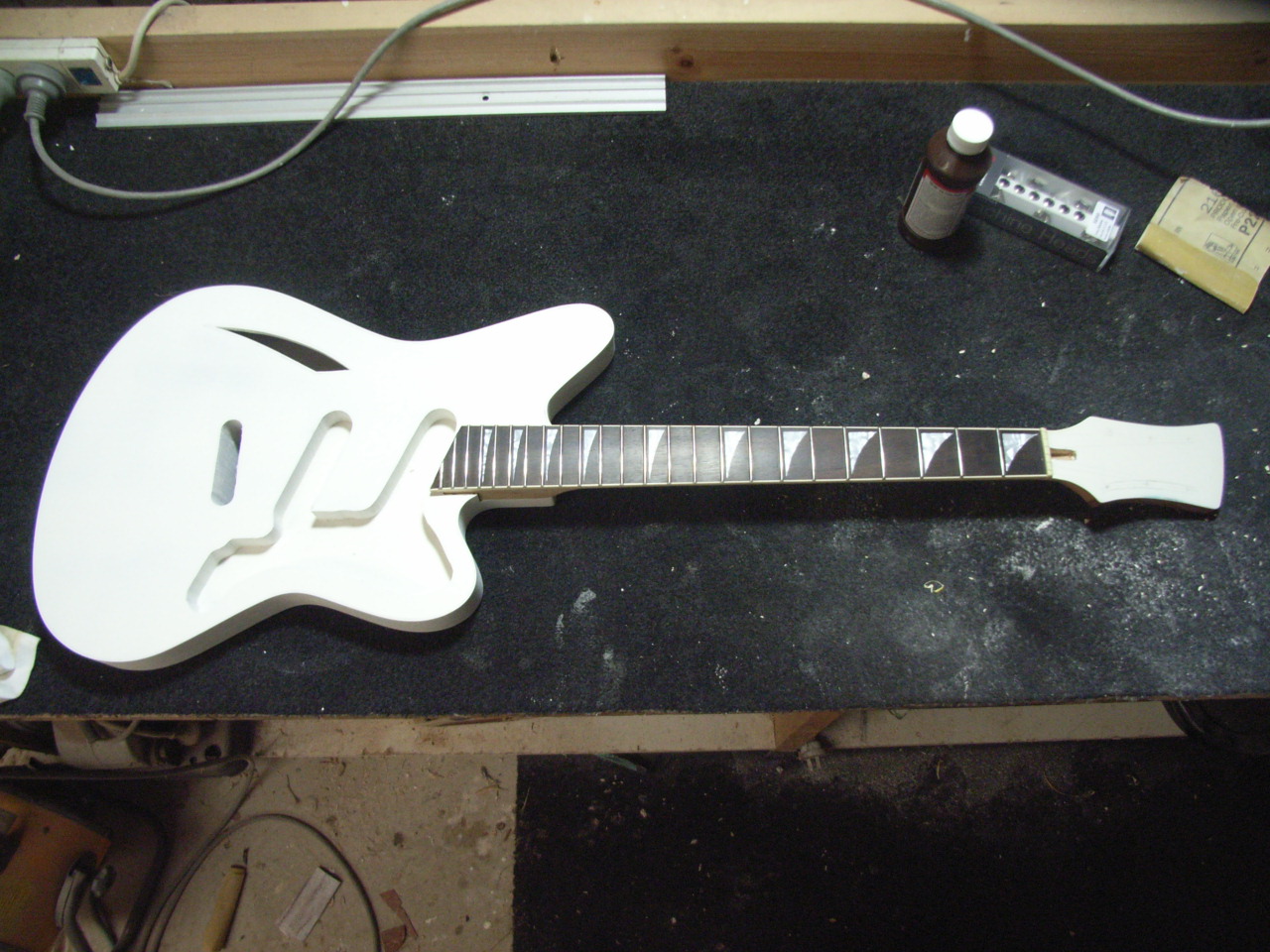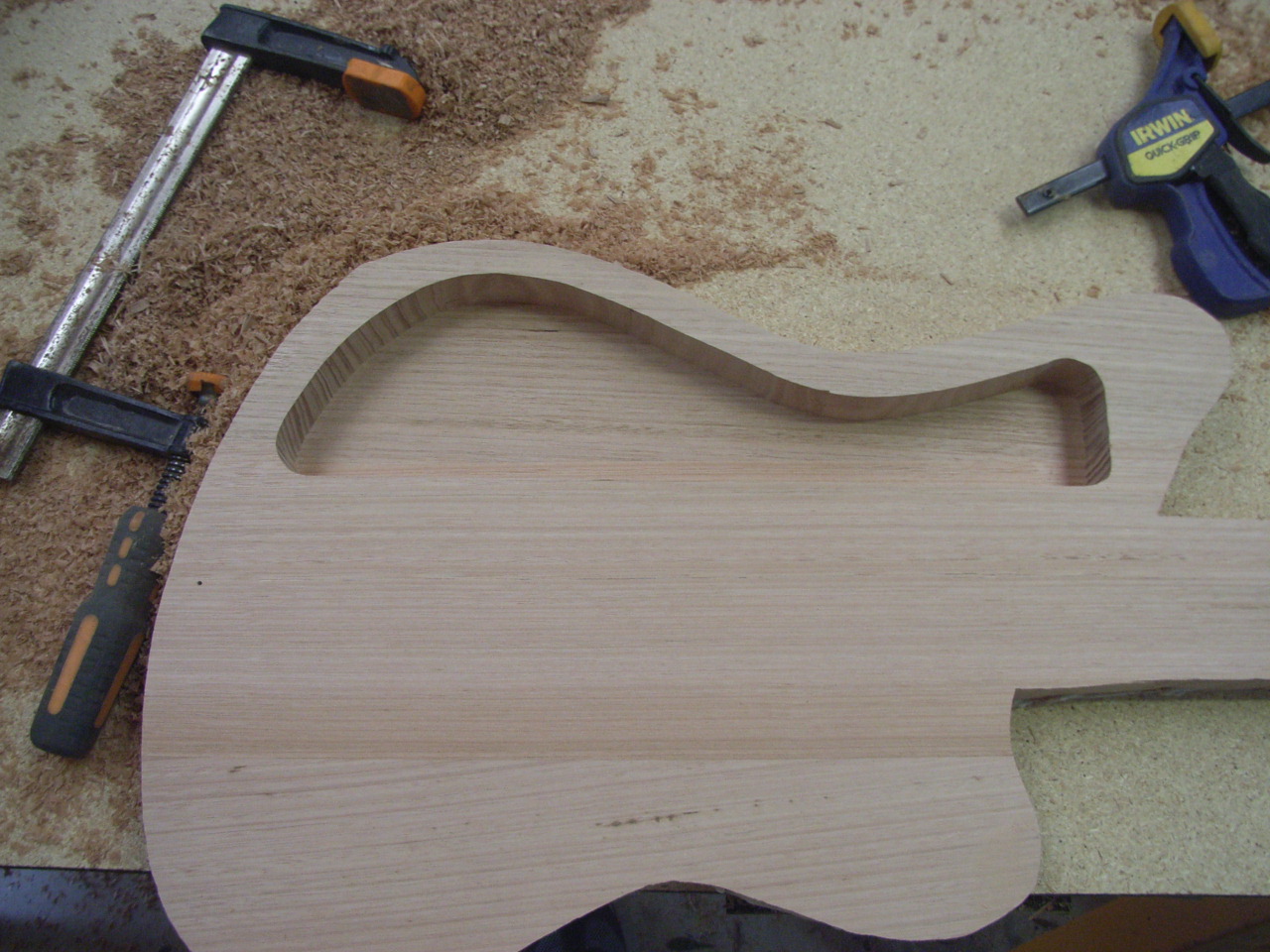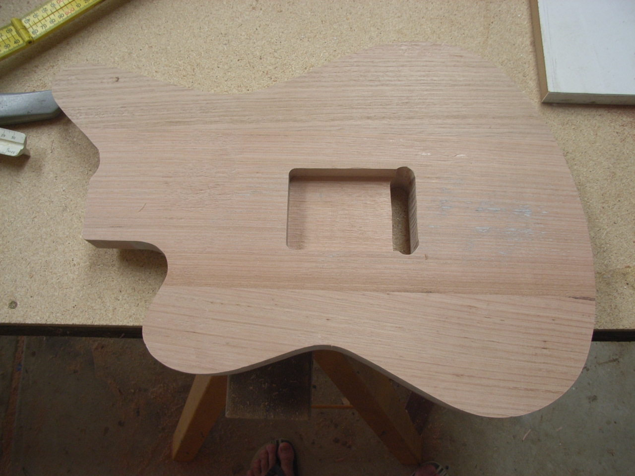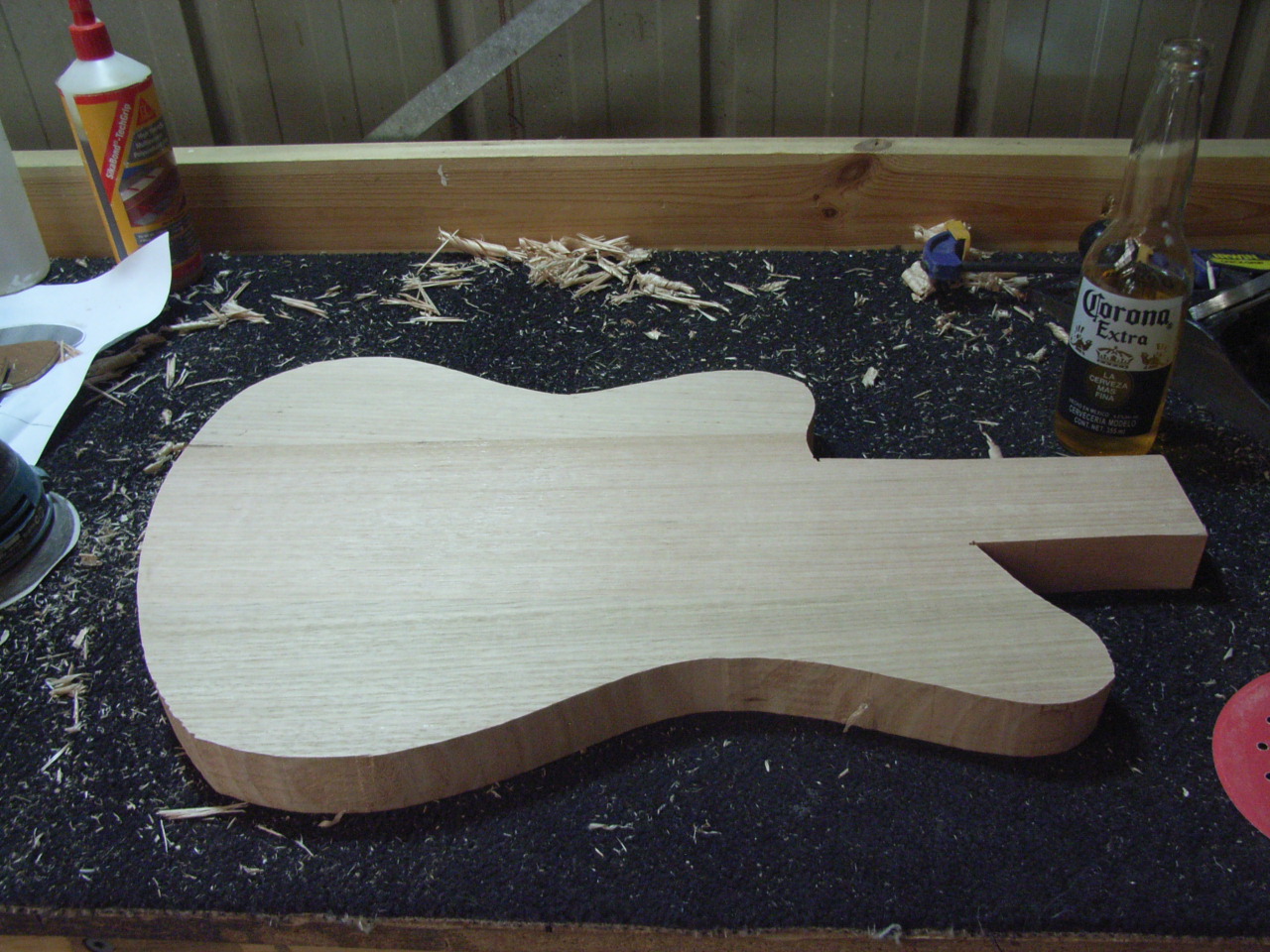 Well the planning started a while back after seeing a Charvel Surfcaster posted on possible kit ideas, so I figured I'd have a crack at a scratchy. First I sourced a photo so I could come up with a shape. Then I enlarged it to what I figured was the correct size, which took a while, and created a template out of some ply I had lying around.