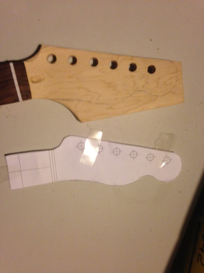 Rear of the headstock pre shaping, penciled in areas were removed and was squared off