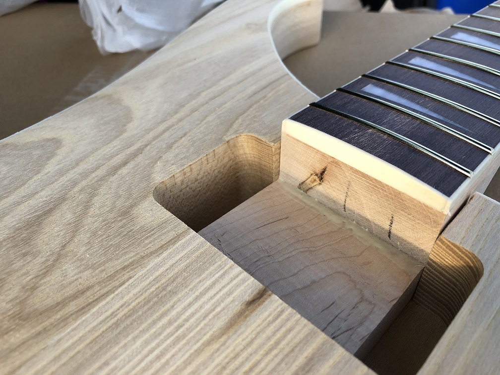 Those little bits that are a bit "different" end up looking great under a finish and really make the guitar unique. It's a custom after all. Embrace them, they'll look great in the end.