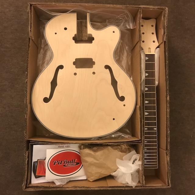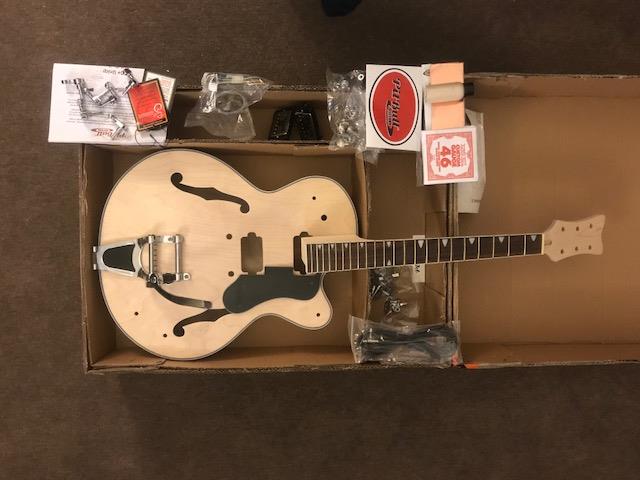 This is my first build. Also new to the blog. Working a few things out. Taking it nice and slow. Would appreciate any advice on my build. My working title for this guitar is the EC-A4. Have been lusting over a Gretsch style Rockabilly guitar for some time and also wanted to learn how to build my own guitars. So two falcons with one stone. Finally got around to uploading some pics of the un-boxing and dry build.