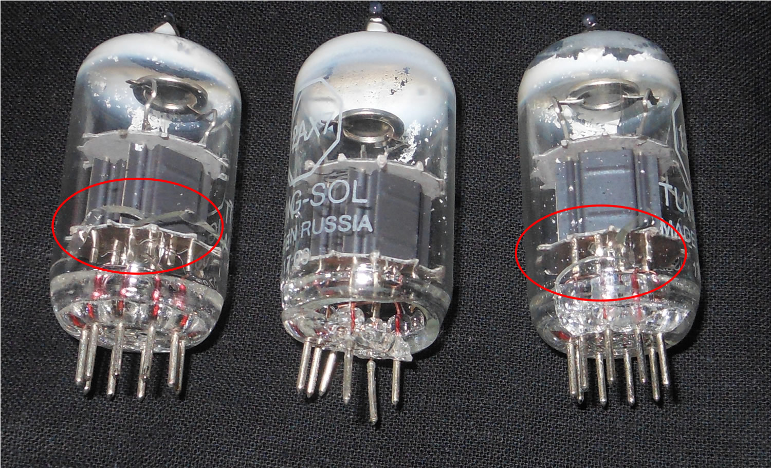 This time it was the other two newbies in the cathode follower and PI sections. The white tops where the giveaway of the tubes loosing their vacuum.