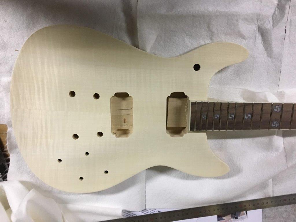 The kit looks pretty good. Clean Binding, frets look well set. Drill holes in correct places.