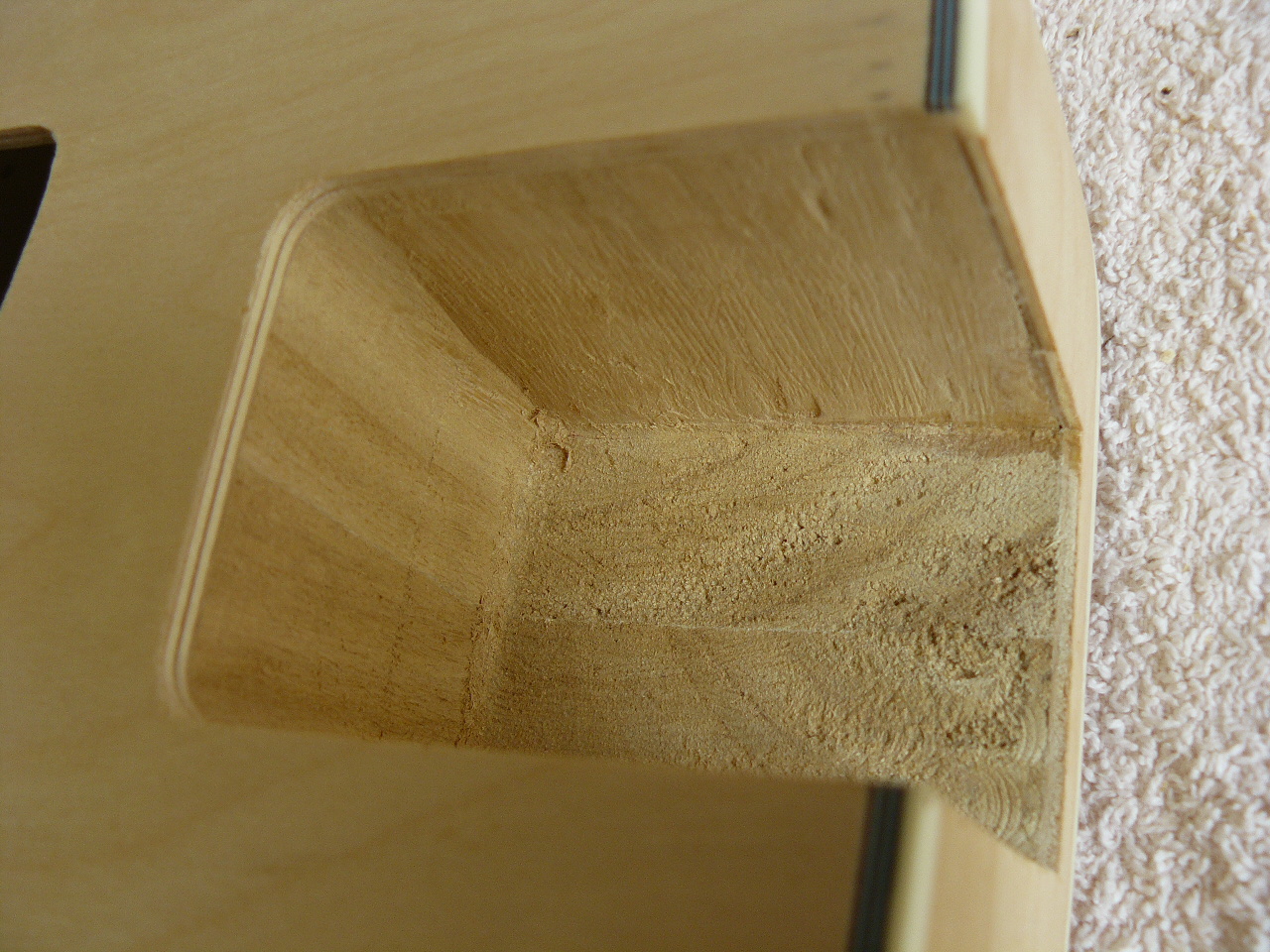 Still not totally decided on the finish; the coward inside me leans towards natural, or slightly stained, but then a good old vintage sunburst would also be so in keeping. It will be hand rubbed whatever and, if I do go for the sunburst, may use small “tester” bottles of water stain, which should give a decent range of colours without too much expense or wastage.