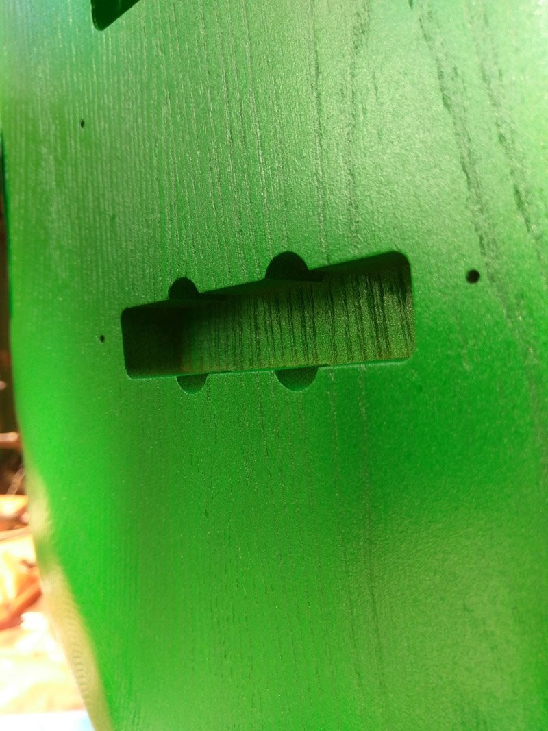 I did the neck and back/sides of the headstock in Rustoleum Satin clear. The front of the headstock is in green.