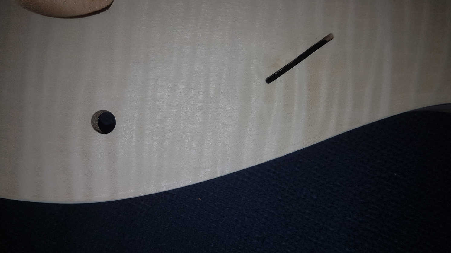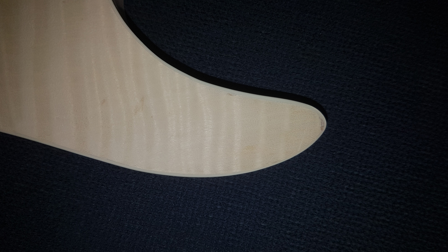 One of the main "Problems" i have is the inconsistency of the binding thickness. for around 75% of the guitar, the binding is perfect in thickness, but at the bottom part (the part you rest the guitar on your leg) the binding is only 0,1 - 0,2 mm thick. This makes it impossible to scrape the binding after staining.