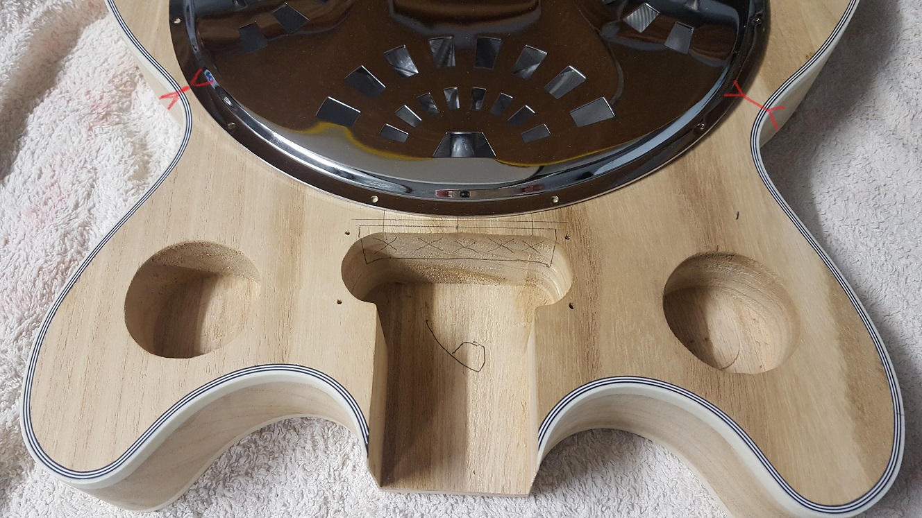 Like FW's mine also has the mini humbucker cutout a little too close to the end of neck. I think the answer will be to widen the recess on the bridge side of hole, comments please?
