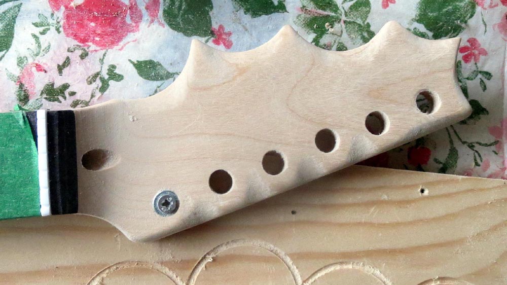 My first step was to re-shape the headstock into the "platypus claw" shape I mentioned earlier.