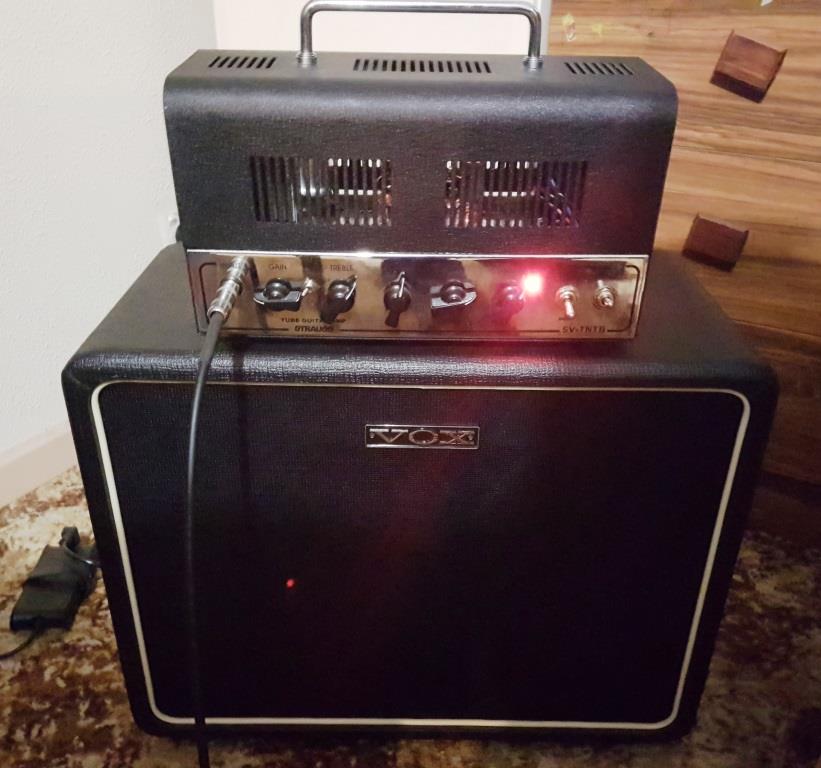 This arrived late yesterday. Picked up on a 20% off sale. I had been tossing up between this, a Fender Bass Breaker 20 head and a H&K TubeMeister 20 head. So when the deal of 20% off came it tipped me over. I was after clean tones mostly. It has an interesting feature in that it has EL84's AND 6V6's and you can switch between them. Also a scale-able output from 1 to 20 watts. Gave it a brief run this morning with the Jazzmaster,then my LP jnr and it sounded great, plugged in the Gretsch and went to heaven! My first all tube amp so I am noticing differences from my little Orange Micro and Vox VTX20. Loads of gain to be had but the cleans....woo. Only used the Jensen Falcon speaker cab , will try the Celestion Greenback cab later