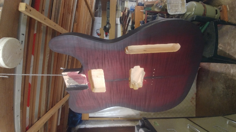 Now I will finish the necks, route the JMA plate and clear coat the bodies.