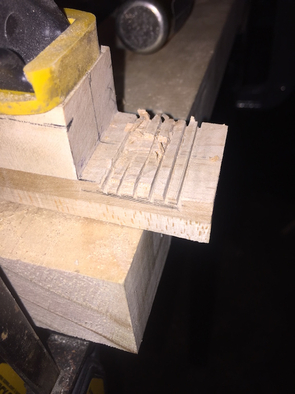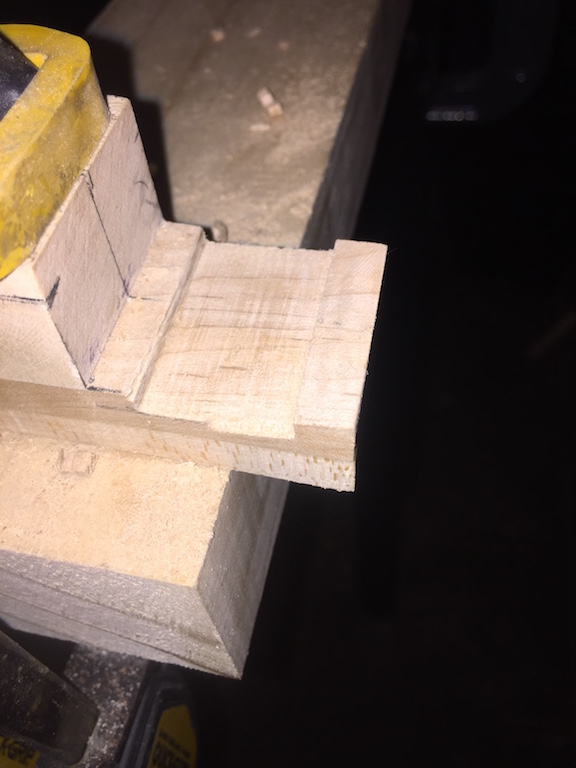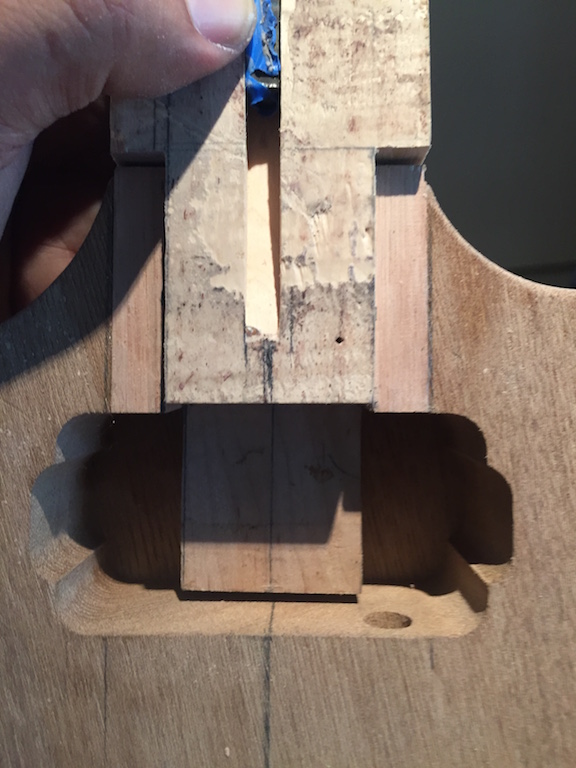 despite the 3 hours worth of test fitting and resounding and squaring off, and general p*ssing about and agonising, i was pleased to find that the marked centrelines on the neck and body actually lined up! Soo rather than wait and agonise some more I decided that pushing on was needed.
