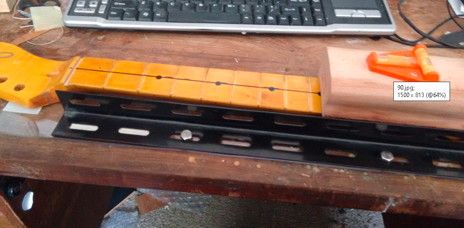 Next up will be this one, and I've already removed the frets and marked the centre line for radius therapy.