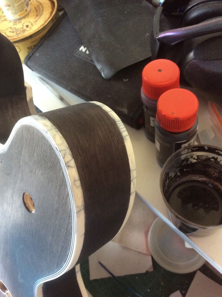 I'm currently building an FC-1 kit I got in the January sale, all was going well until I came to stain it. After doing some research I decided to stain the whole guitar and then scrape the bindings clean. As I scraped it back I noticed parts of the binding have small cracks in them which have absorbed the stain, leaving it looking like this.