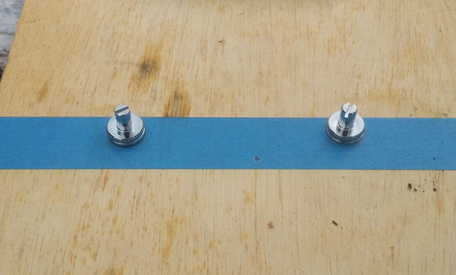So, I decided to build a stable platform for the drill guide that I could put over the body. I took an old shelf I had lying around, but any flat piece of wood will do. I cut a couple of pieces of 2" thick scrap lumber so that they were perfectly flat on both the top an bottom, and about 3.5" tall. This formed a stable base. I screwed the drill guide down to the platform to maximize stability. I wanted the drill close to one edge of the piece of shelving, so I used a hole saw to drill a 3" hole for the drill bit to go through. you could do this with a jig saw, or drill a smaller hole, but the big hole, and being close to the edge of the shelf, gives a better view of what you are drilling into.