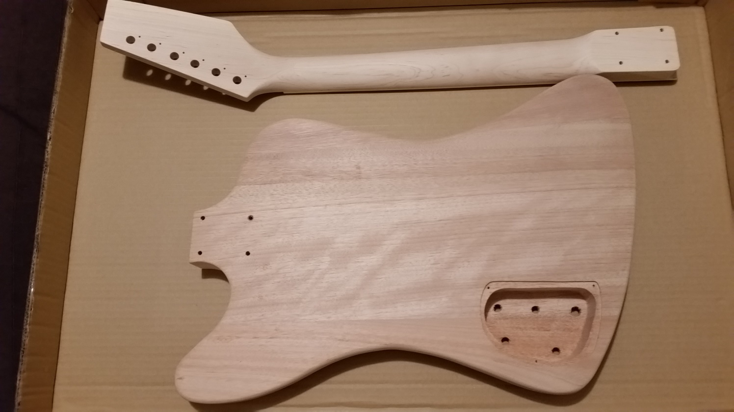 Decided it was time to play with using veneers on a build. Ordered the FB-1M kit without electronics and hardware, but with the pickguard and knobs.