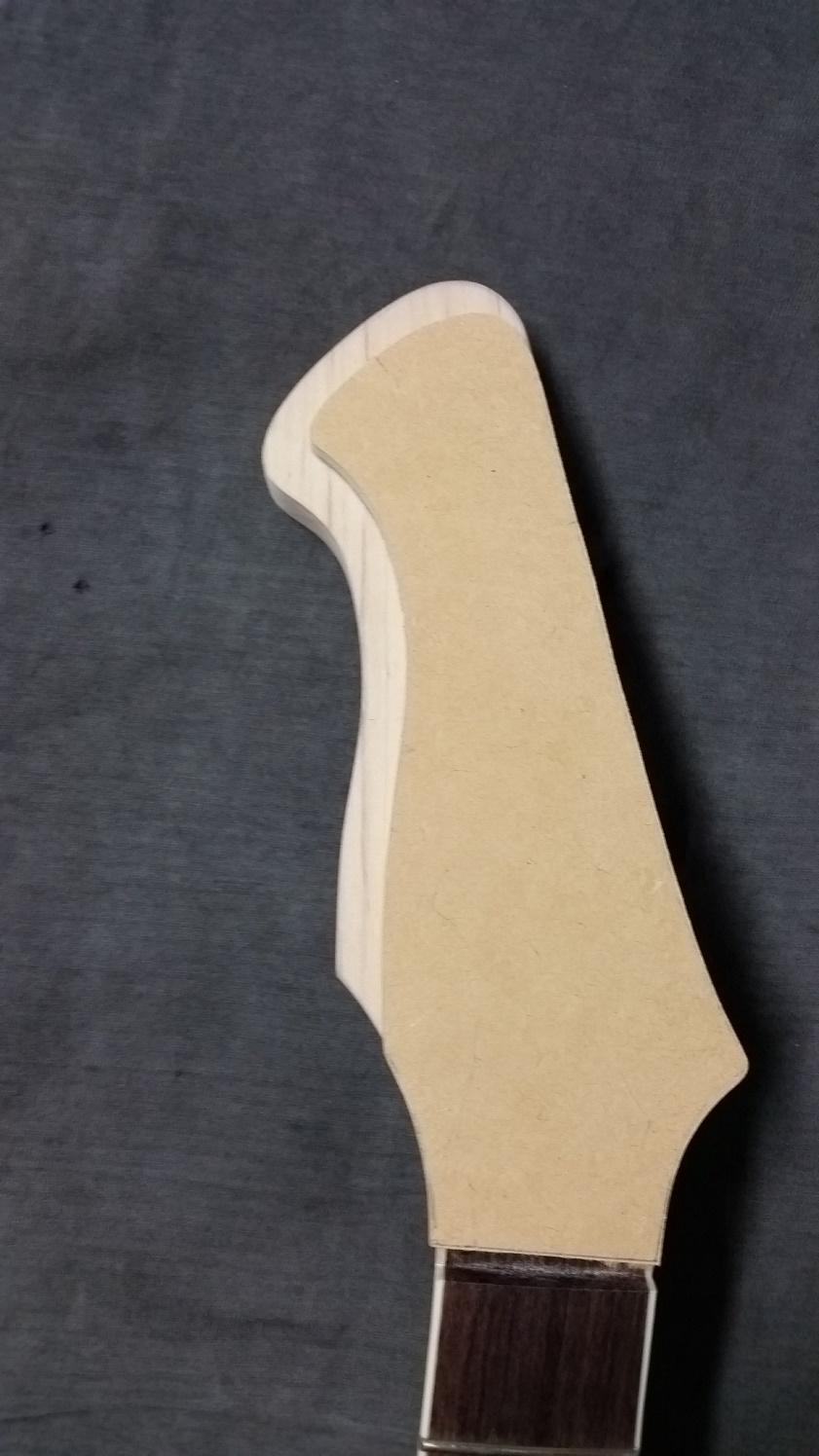 Plan is to use some veneer on the HS, not cover the whole thing, but as a 'feature', for want of a better word. Made a caul from MDF to help shape the edge of the veneer and also act as a clamping caul, well that's the theory anyway. Not entirely sure the best way to attach veneer to caul and be able to remove easily, small spots of pva glue maybe? Or double sided tape? Will work something out.