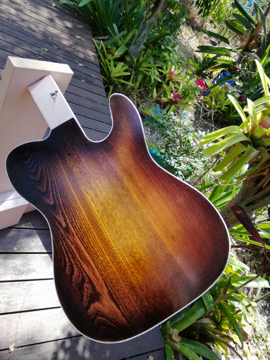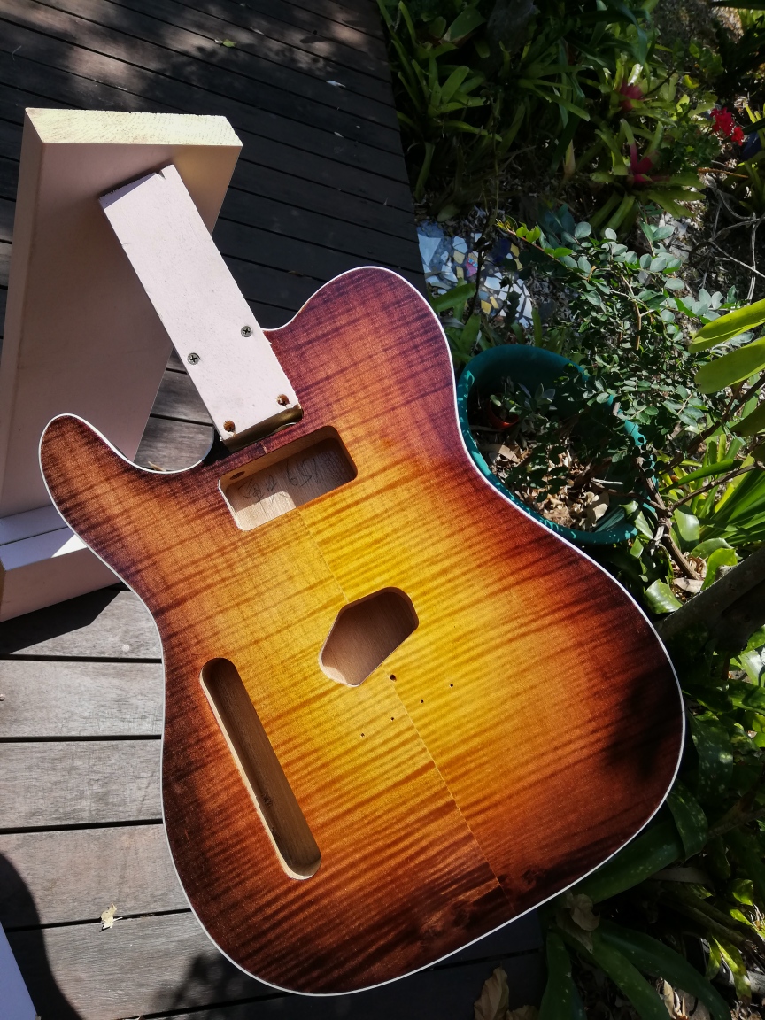 Choosing to leave out the pickguard has present some challenges, first with the pick up, then with a little high spot in the veneer.