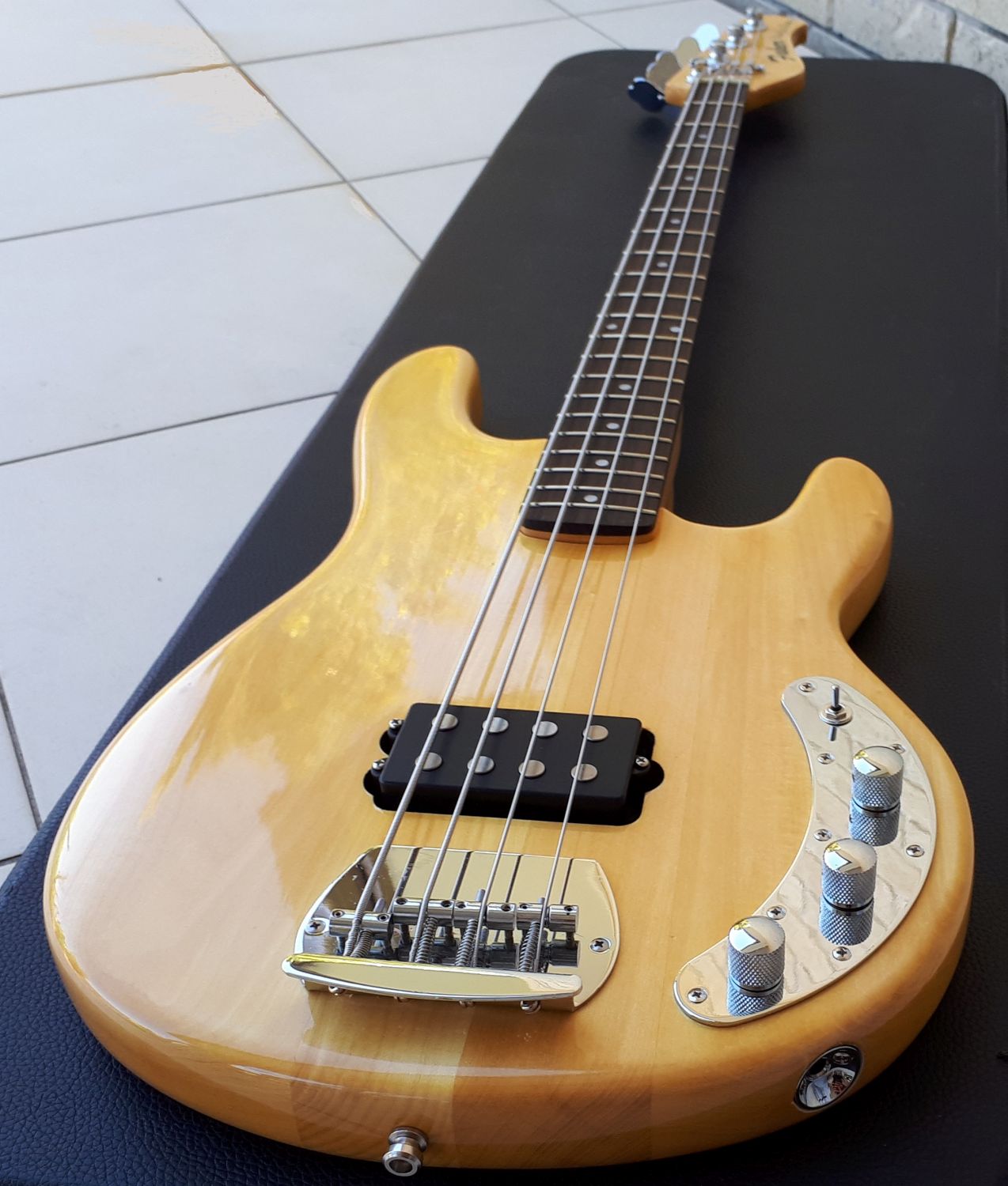 It was way past 10 pm when I screwed down the boomerang plate and plugged it in to the Hartke 75w combo and had to keep volume at a sensible level but was quite impressed with the tone of this GFS pickup, and the 3 way mini dpdt switch does actually work and provides a couple of significantly different sounds. all of which are best when left in humbucking series position. When dropping a coil the level also drops a bit and can't wait to play it over the weekend with a bit more volume to see how it really sounds.