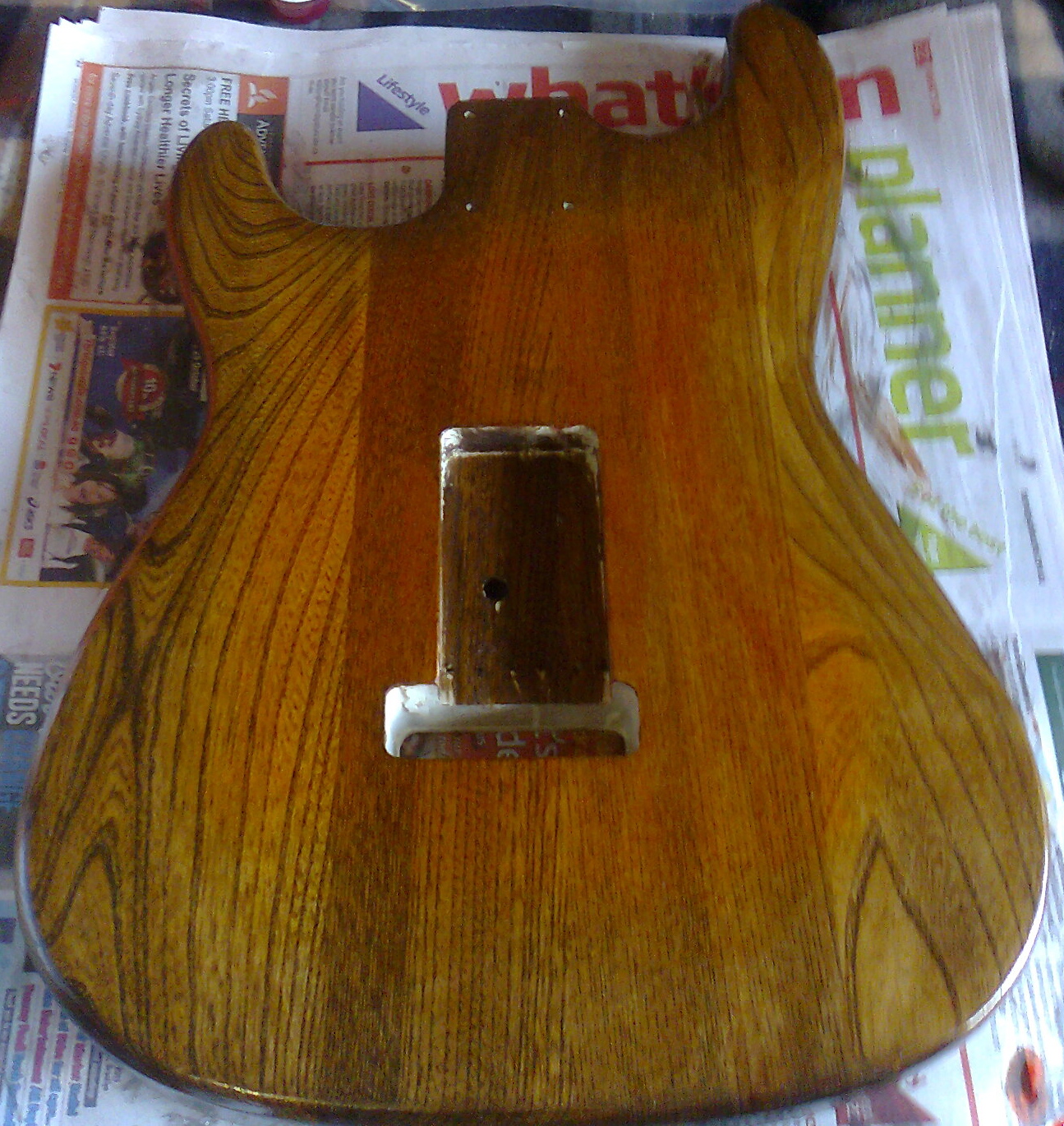 It's been a while since I've posted any updates on here. I was going down the solid colour route for the headstock, but after a number of attempts the plugged holes were still showing, so I've abandoned that idea and I'm going to go with veneer. For those of you who have done this before, how do have you cut the veneer to avoid tearing?