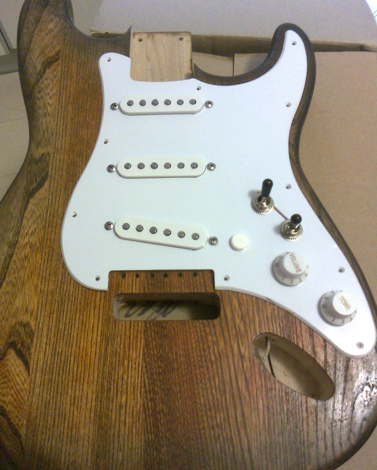 Different wiring approach Fretty and I like it. With the veneeer depends a bit on the timber I suppose. I have only done veneers with maple and it can be a pain for splitting. I find art/stanley knife cuts cleanest but I always cut a bigger piece than headstock with one straight edge for the nut/fretboard end. Once glued and unclamped I turn headstock over and trim with artknife and then cleanup with wood files.