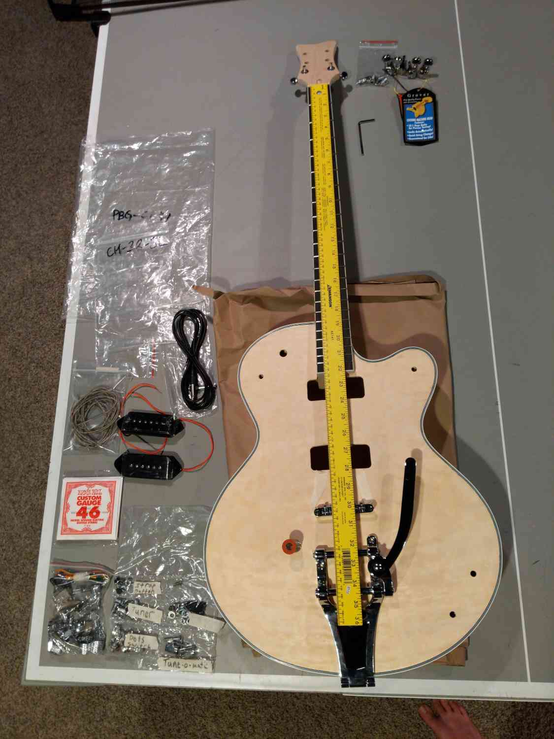 My custom Pit Bull kit finally arrived and I am so excited. This is my first build. After hundreds of hours of lutherie training from the "University of YouTube" now I'm ready to get started and learn for real.