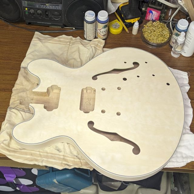 Getting into a semi-hollow for my second build, and adding a burst colour scheme to up the complexity.