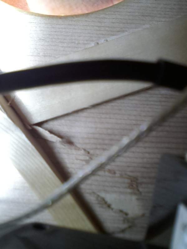 The second damaged area was the forward brace on the same side(the top edge). this brace had deglued and taken about four square inches of the first two layers of laminate off. I have no idea how I can fix this without spreading glue all over the place.