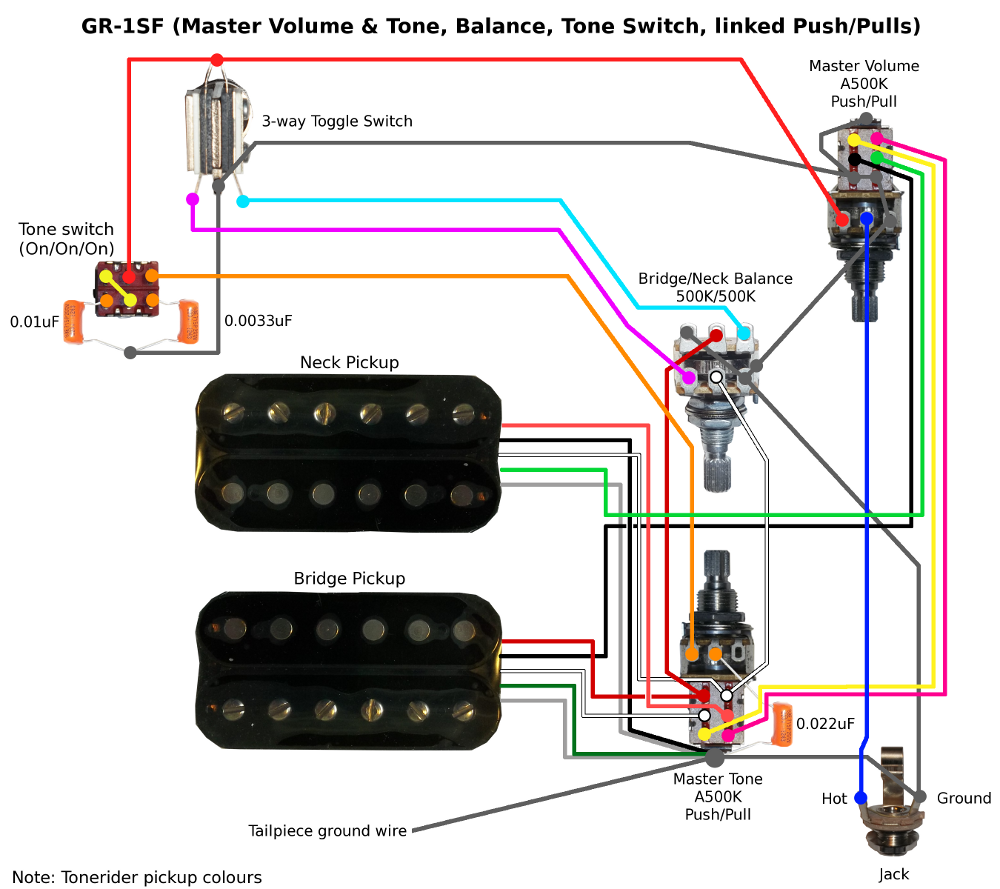 There's been a bit of a run on GR-1SF builds recently and several posts asking about wiring, so I thought I'd have a go at a few wiring options. The supplied caps and pots etc. aren't ideal for the traditional wiring layouts of the original manufacturer, but you can make them work. The kit is supplied with (at least in mine):