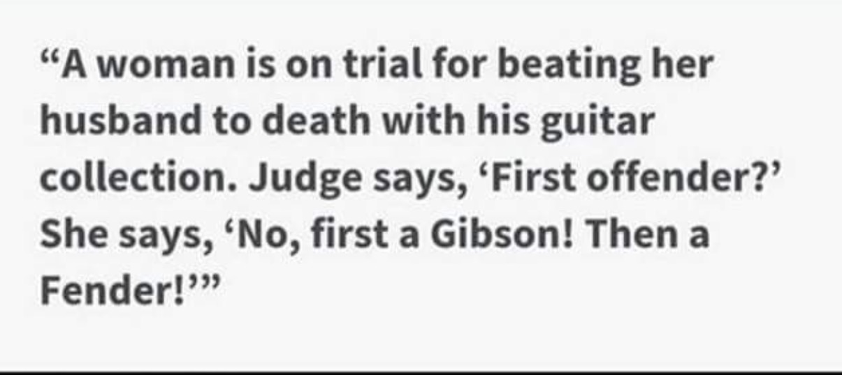 I can't think of any good muso jokes right now but will come up with some later aimed at everyone except guitarists haha