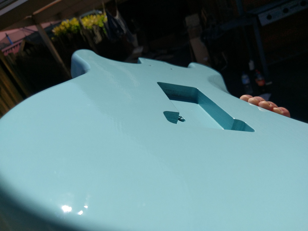 That's actually a nice shade of blue, a bit like Sky Blue, can't wait to see this one finished, I wouldn't mind doing a Daphne Blue Strat one day.