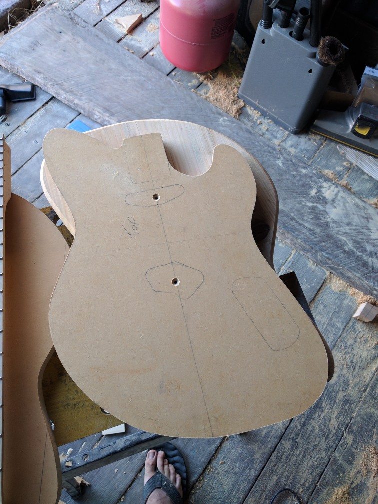 Built the body out of a bit of knotty Bunya pine. I've only just got stung to filing those knots. Thought I'd do all of the initial shaping first.
