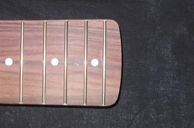 First thing I noticed (even before I purchased the kit) was that the tuner hole on the headstock for the G string was in the wrong place to be aesthetically the same as a real SR-5. It appears to be in the position for the 3+1 configuration, with the 4+1 G tuner position 25mm further toward the end of the headstock.