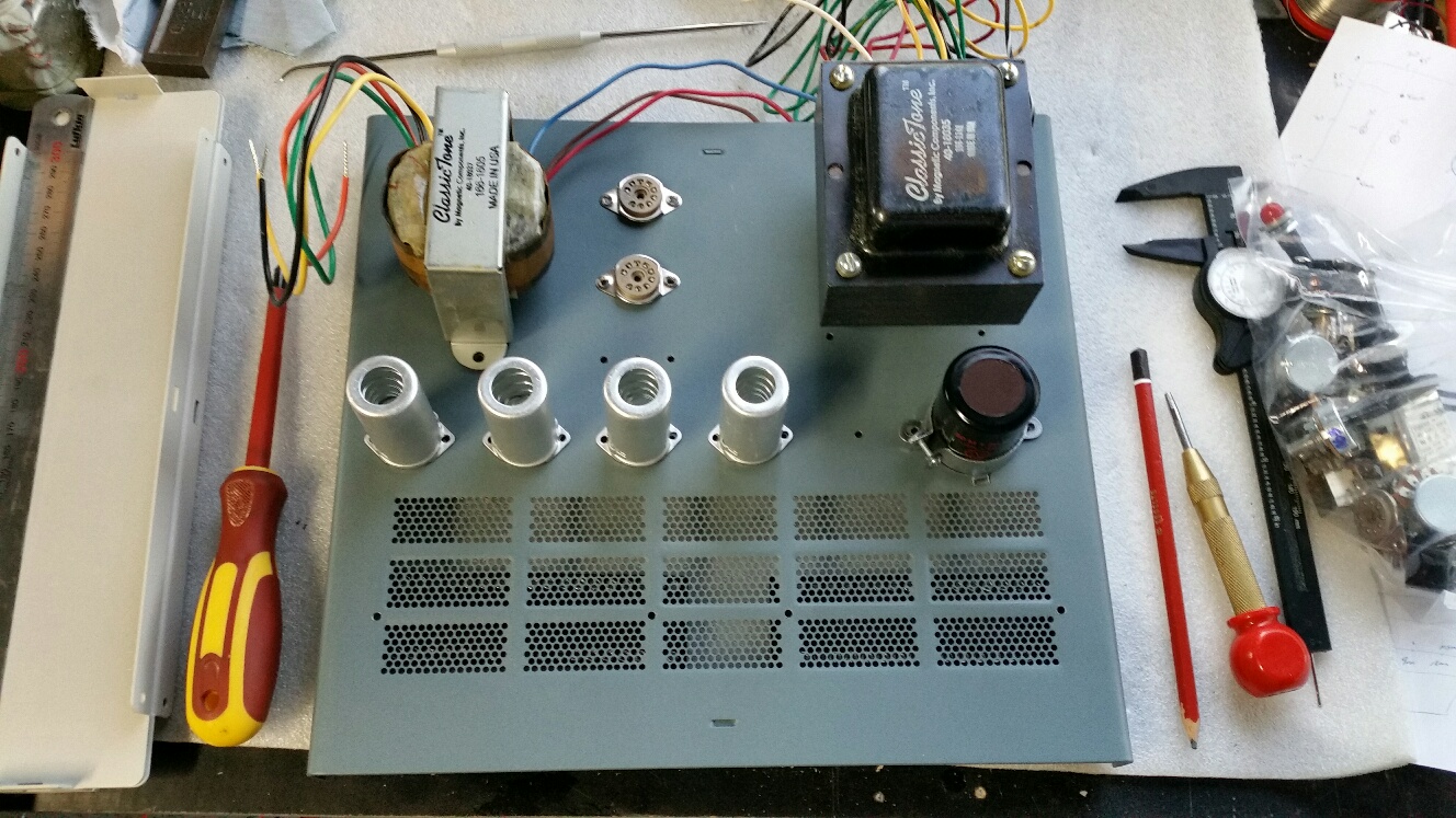 As it stands, I have most of the important bits like HV caps, tag strips, pots, knobs, tubes, sockets, transformers and a chassis from Jaycar. Still waiting on delivery of numerous resistors and various caps from RS-online.