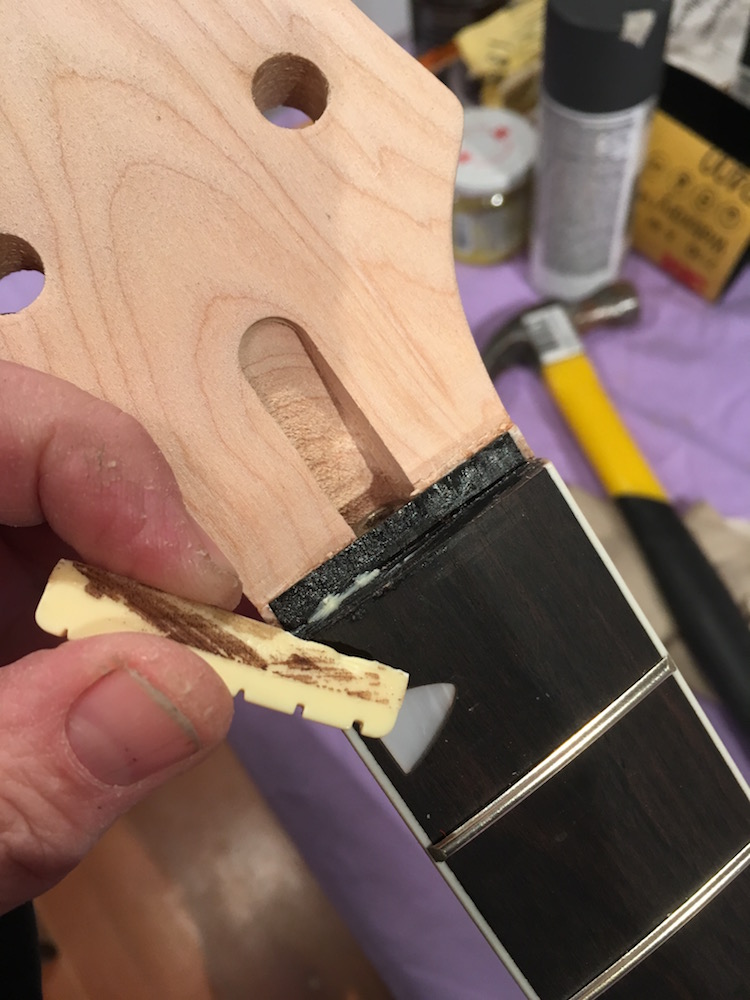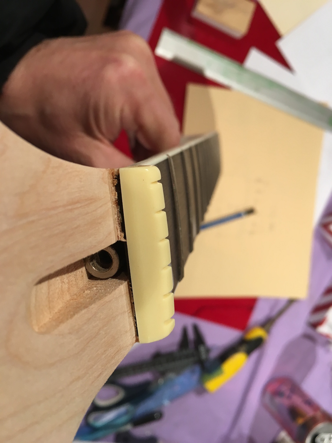 Same with the nut which seems only to be supported by a couple of millimeters of material underneath it at either end—otherwise, it seems to be mostly hole underneath. Also, not sure how to deal with the gaps between body and neck, once the neck is attached.