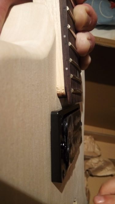 Also, the neck does not seem to fit properly on the body, the fretboard sticks half a centimeter (or more) above the body, not quite sure what to do with it!