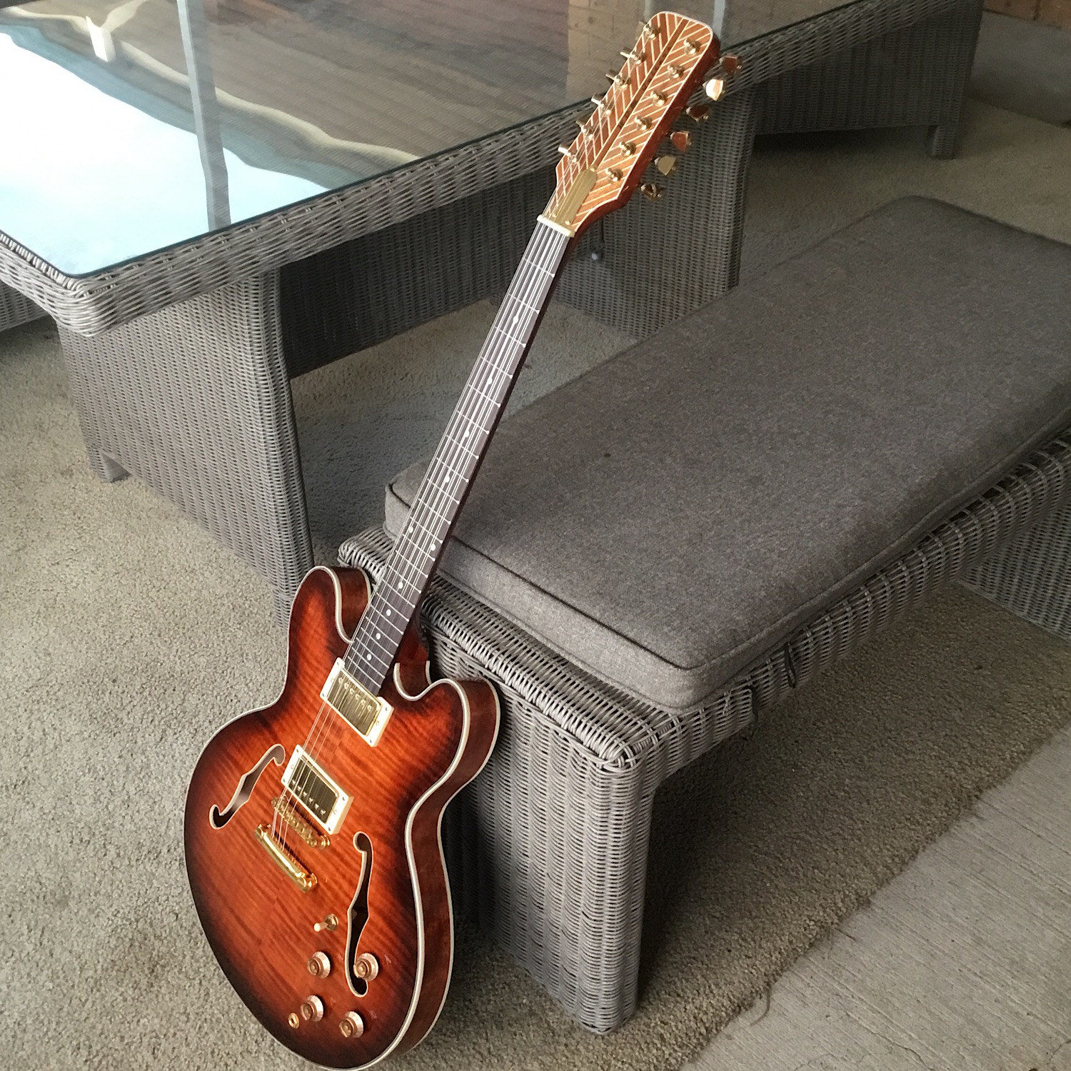 · shot of the back of the guitar; and