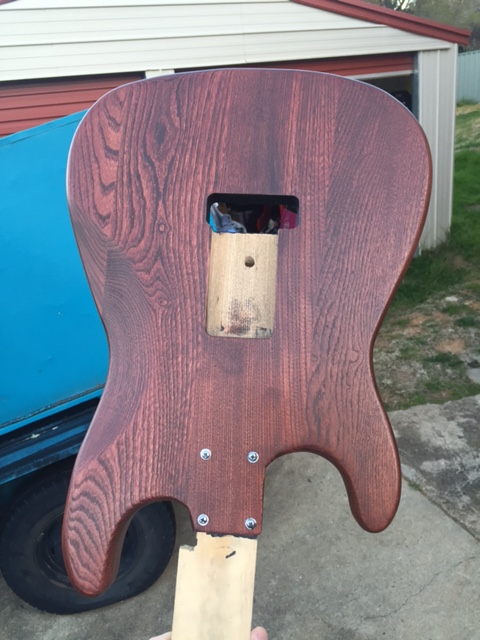 Next step was sanding and raising the grain as its an Ash body so I followed the tried and true method I found online of sand with 240 grit, wipe with wet cloth and repeat until the grain stops lifting, this took about 4 process repeats spread over 4 days until I was happy