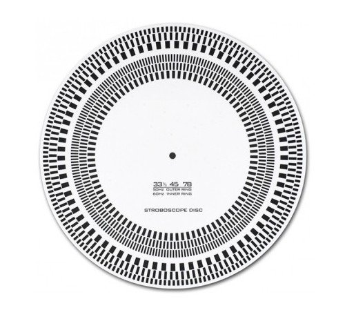 The idea is that you illuminate it with a light source modulated by the normal mains 50Hz, and when the turntable speed is correct is correct the circular pattern of bars for the particular speed required (eg 45rpm or 33 1/3rpm) becomes stationary.