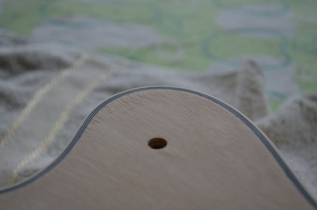 A few days later, while I had the parts out on the table, my daughter managed to knock the neck off the table, and it fell on the top corner of the heel end. This necessitated some repair work unfortunately, and there is a small chunk missing from the binding now :-(