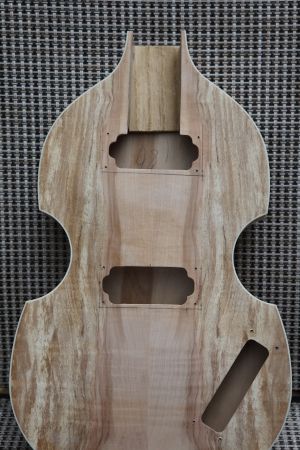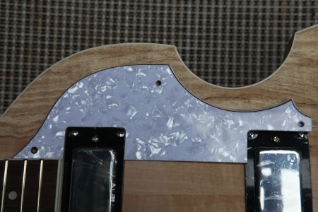 I made an assumption (dangerous at any time) that the body was symmetrical and used the points of the C cutaways on the sides in the middle as reference points. Measured from point to point across and used this to determine the centre line of the body, and marked that with a charcoal pencil (charcoal is realy easy to remove). From there I measured out half the width of the pickup plate either side of the centre and marked that. Then marked the centre of the other axis for each pickup and marked from the centre out. I then marked my holes for the pickups, drilled them, and mounted my pickups.