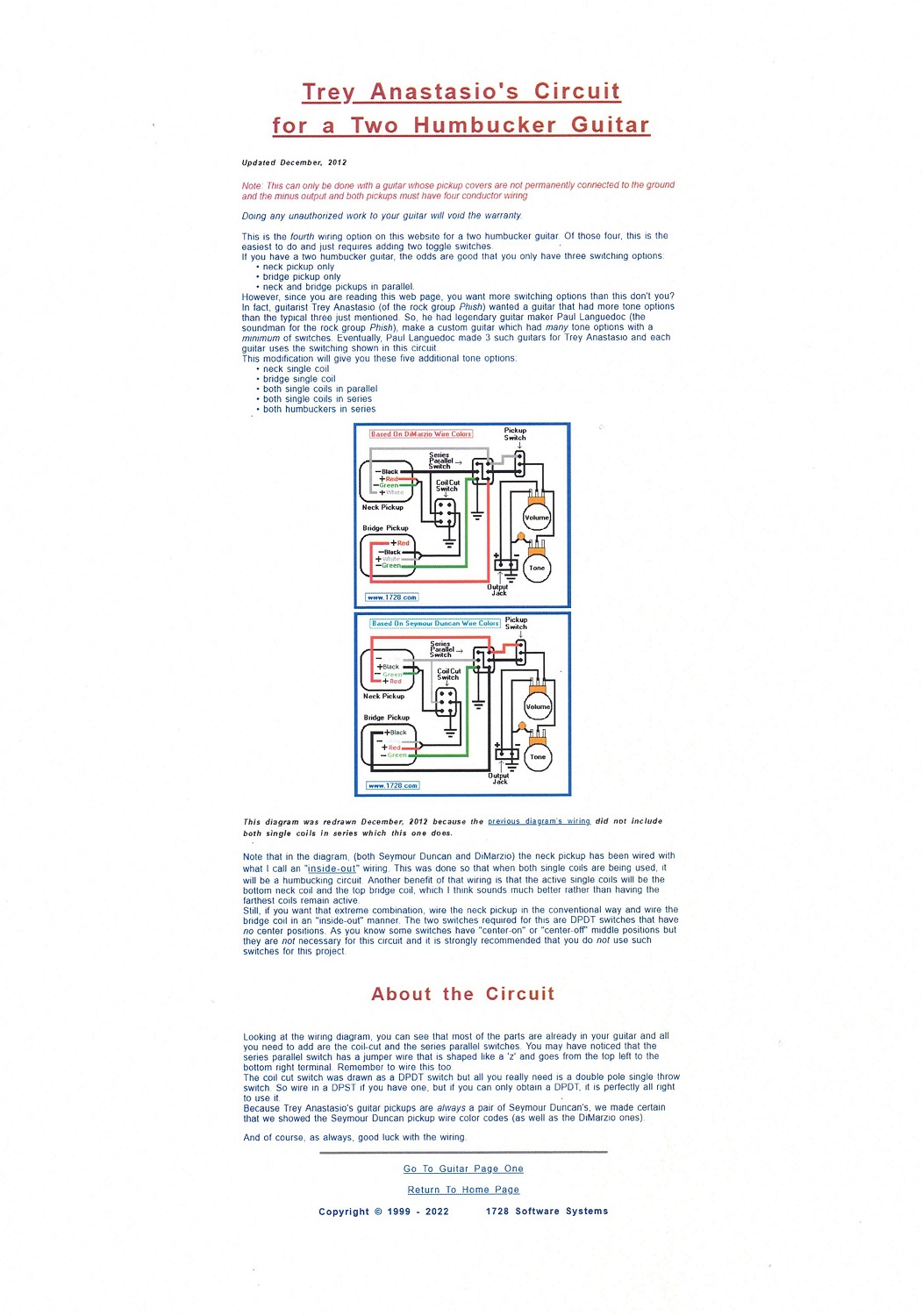 "This can only be done with a guitar whose pickup covers are not permanently connected to the ground and the minus output and both pickups must have four conductor wiring".