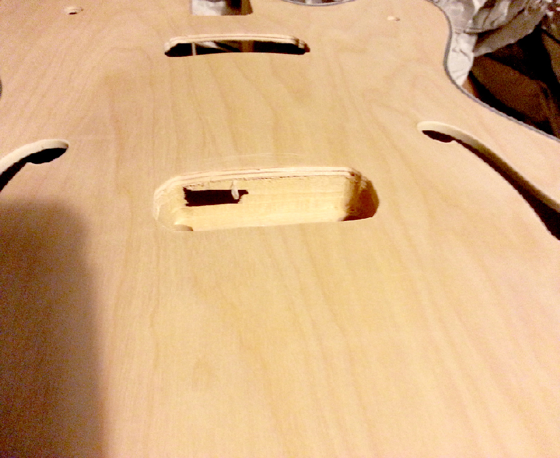 Finally, another issue, purely cosmetic I think, is the bridge pick up emplacement seems to have a hole in it. By examining it it seems that this whole face of the emplacement is quite thin as opposed to the other sides. Should I be bothered/ worried?