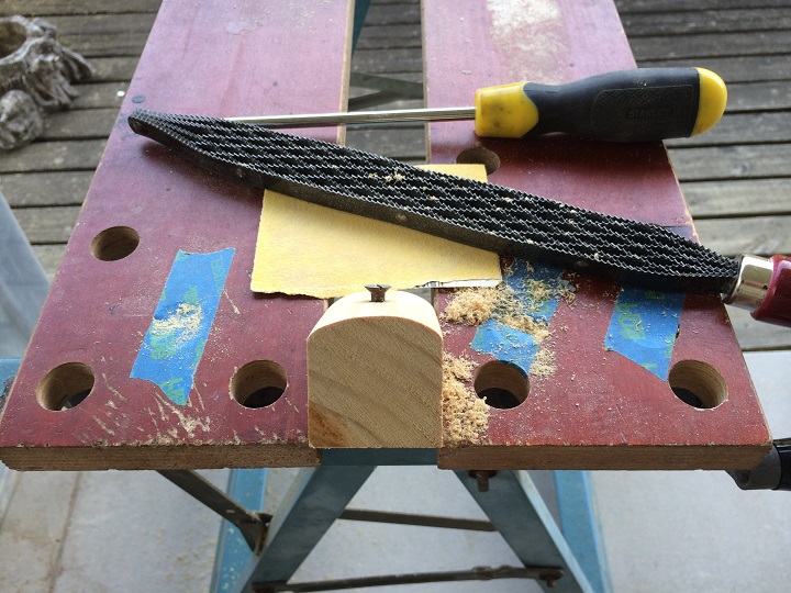 I needed to cut a guiding gouge so as to reduce tear out. I would dearly love to be able to afford to buy a descent gramil but even with one of those, with its flat surface, I was going to have a problem with the horn and the waist-line of a guitar. I found the answer on Google and made myself a “poor man’s” beading tool. I had to modify it by rounding of the surface to fit the contours of a guitar but it worked pretty well.
