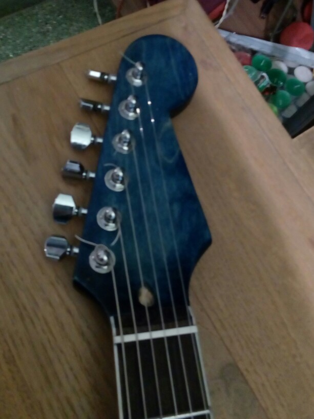 I just cut the headstock in a stat style one and i used a pair of pickups of a gibson les paul special worn finish i had and some old knobs , which i like them but dont fit exactly.