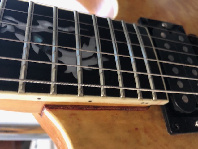Strings are running parallel to the edge of the fret board. It also fixed the string height issue it had on the treble side & made the whole thing much nicer to play