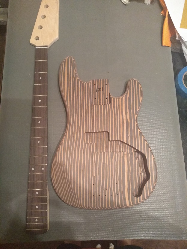 For the neck and headstock I'm going to use the original vintage yellow and top coat from Wudtone. The idea for the headstock is to use a coping saw to shape it like a reverse Firebird headstock shape. I may not have enough wood to work with though, so I'll update that idea as needed. I added the copper shielding tape too, but I think I'm going to use a shielding paint this time. I may end up swapping the white pick guard for a clear pick guard, the paint would probably end up looking cleaner. Thanks everyone!