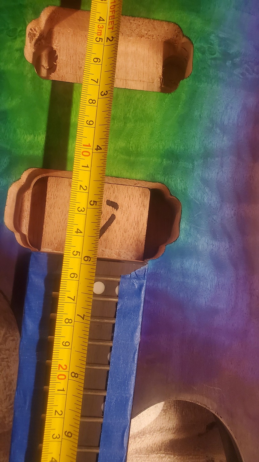 This is my first build...ever, and I just want to make sure that I'm not overthinking (or underthinking) this. From everything that I'm seeing from other people, apparently the scale length is supposed to be tricky...and from what I can tell, I think my guitar is pretty straight forward...but I really want to make sure. It's supposed to be a 24.75" scale...and if I put the neck all the way into the pre-routed neckhole, it seems right on the money. But can I get some experienced eye confirmation?