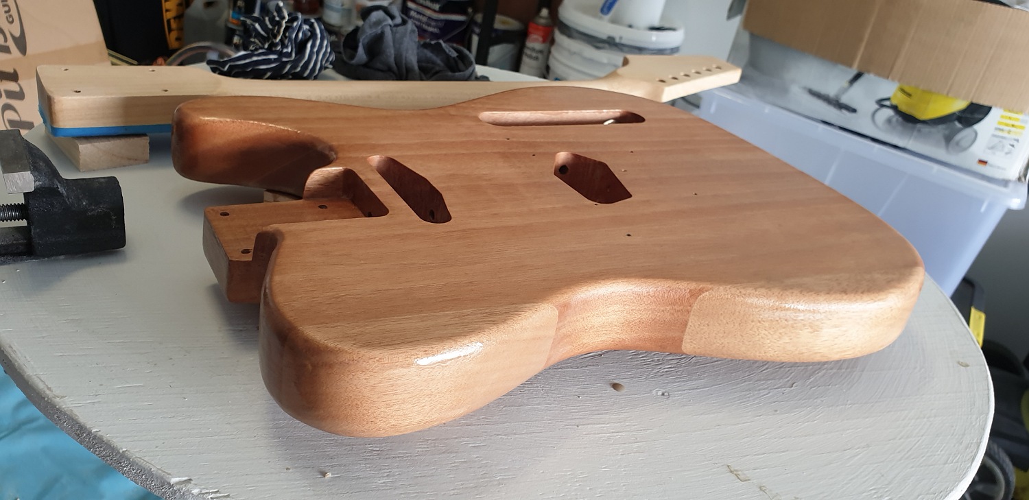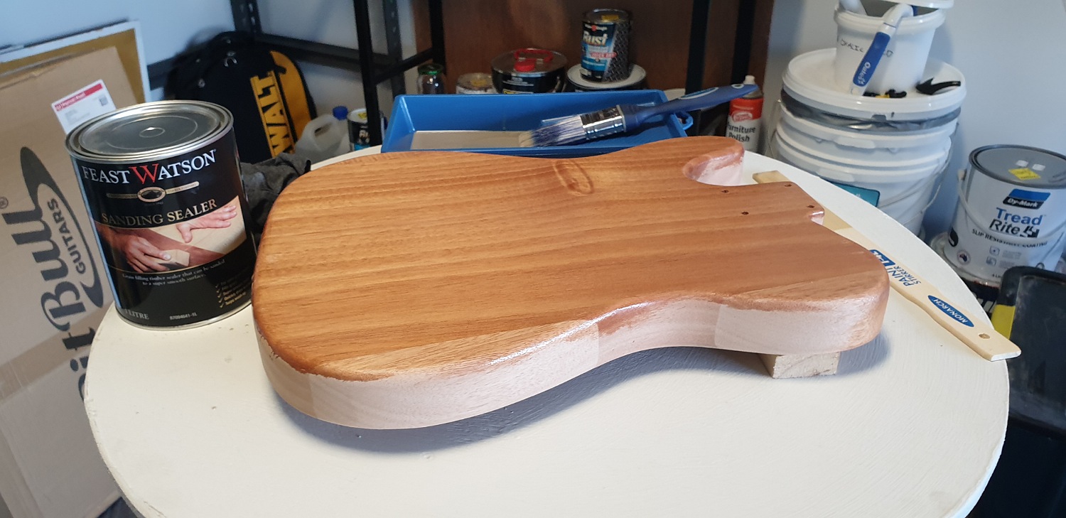 I deffintly jumped the gun 2 weeks ago and started by putting 3 light coats of sanding sealer over the body and 1 light coat on the back of the neck and headstock. It looks great but deffintly not the best starting point so I have joined the forum, read the guides and did a semi mock build.