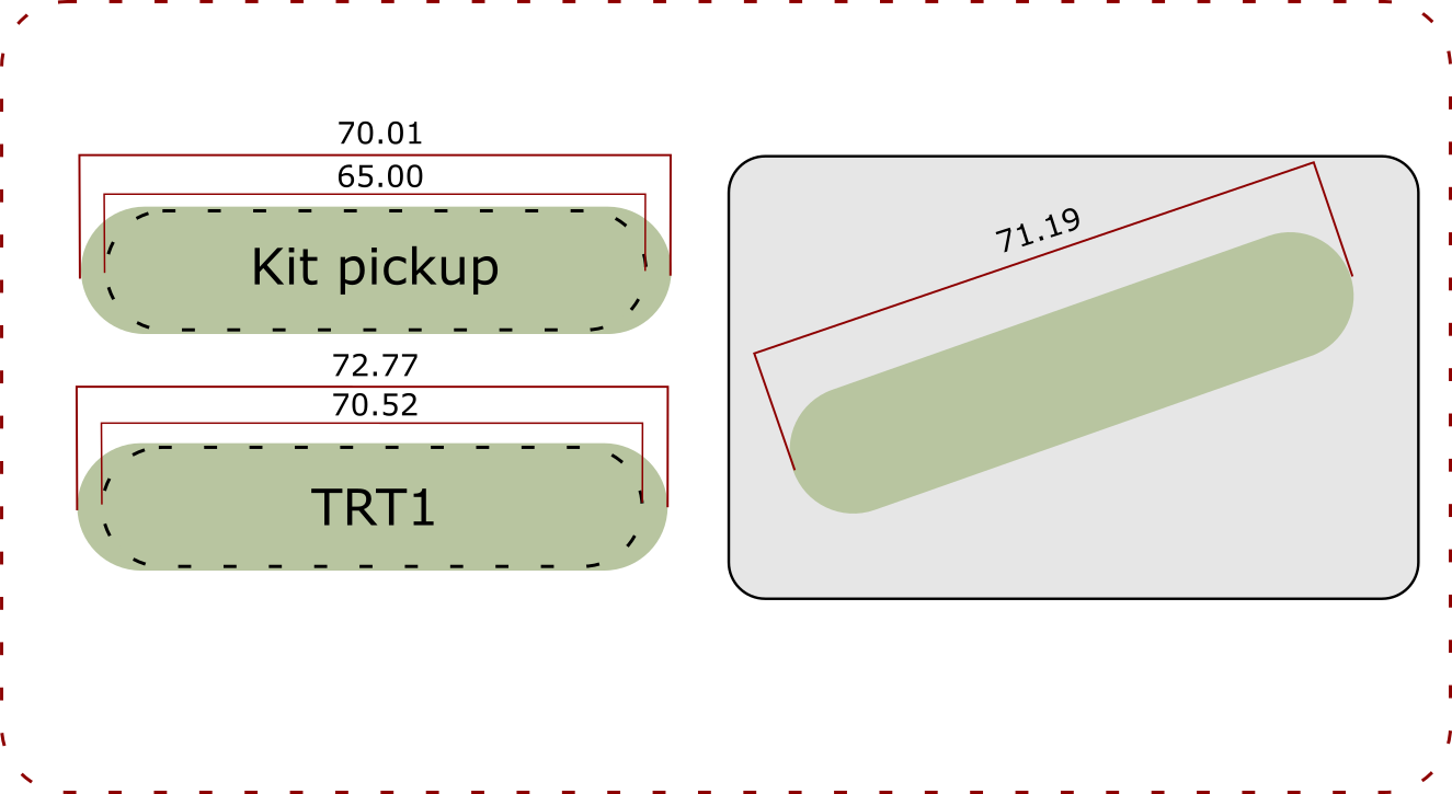 I have put all the measurements of the kit pickup, TRT1 and the hole in the bridge plate in the visual below.