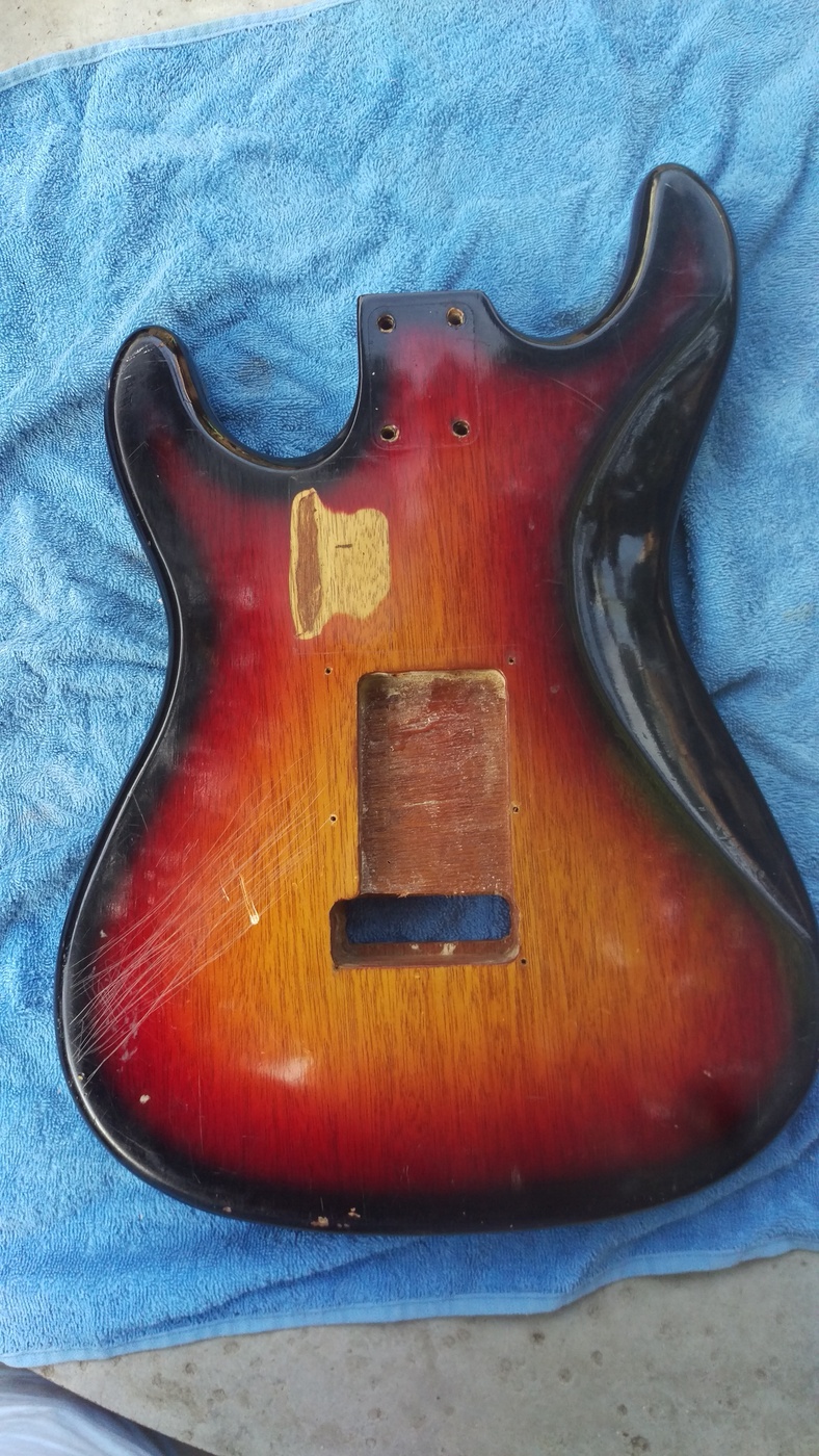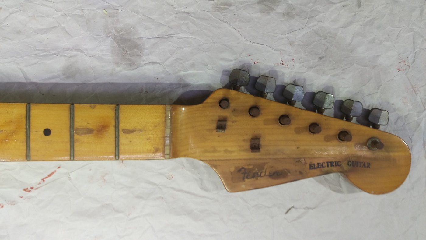 A friend of ours left me a very distressed strat. It was in pieces as he had been meant to put it back together, but it never happened. Sounded like a fun job, so I took the challenge.