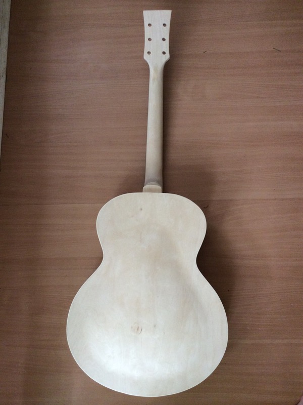 For those thinking of building one of these for acoustic playing, you may want to rethink your plans. The soundboard is supported by a block of wood from back to front, instead of tone bars like most full hollow-body arch tops. This is probably to stop the feedback usually produced in these guitars. Having said that, tapping the top sounds ok. It would probably sound fine if all you want is to practice while the kids sleep in the next room.